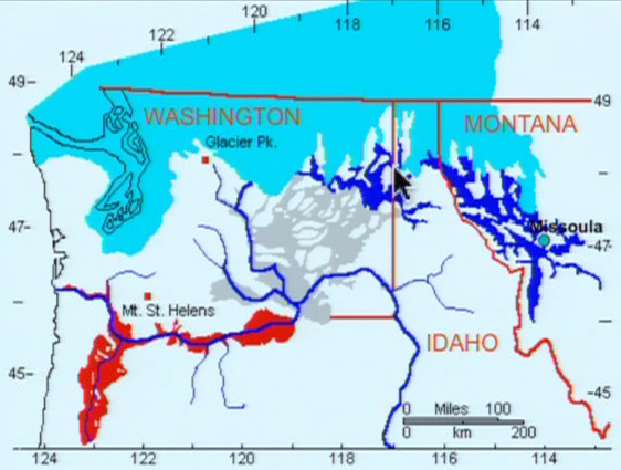 Mahatsikaiky ihany fa nahazo rariny ihany i Bretz 40 taona taorianan'izay, rehefa nisy mpahaibolantany maromaro nandinika ny toerana. Betsaka sady mazava ny porofo, ary fantatra ankehitriny ny zavatra nitranga. T@ faramparan'ny ère glaciaire, nisy soson-gilasy (izay antsoina hoe "calotte cordilliériène") nandrakotra ny ankabetsahan'ny tapany avaratry ny Amerika.