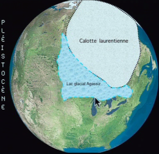 Ity indray misy tranga mandoza nitranga t@ ère glaciaire. Rehefa niempo ny soson-gilasy laurentide tany Canada dia nitangorona ny rano ka nanome ny lac glacial Agassiz (Louis Agassiz no anaran'ilay manam-pahaizana Soisa nahita ny famantaran'ny ère glaciaire tany Eorôpa. Nandeha tany Amerika koa izy ary nahita famantaran'ny ère glaciaire koa tany, ka lasa mpampianatra tany Harvard izy). Nirakotra velarana nipaka manomboka avy @ Albetra Atsinanana ka hatrany Québec Andrefana ilay farihy. Nikoriana mankany @ Golfe du Mexique mandalo @ Mississipi ka ritra tsikelikely teo ilay izy.