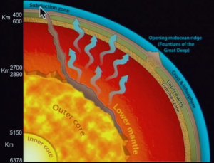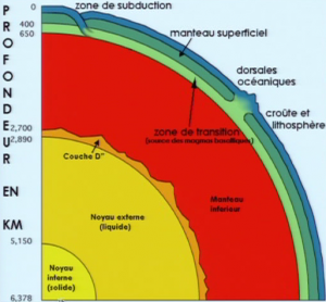 Ka raha tena nisy vongana écorce océanique nilentika hatrany @ noyau 4 500 taona lasa eo ho eo dia tokony mbola tsy nanam-potoana hihafàna ka hitovy hafanàna @ manodidina azy ilay izy. Raha ny tena marina, afaka mandinika ny kibon'ny tany @ alalan'ny onja sismika isika, ka izao ny zavatra hita :