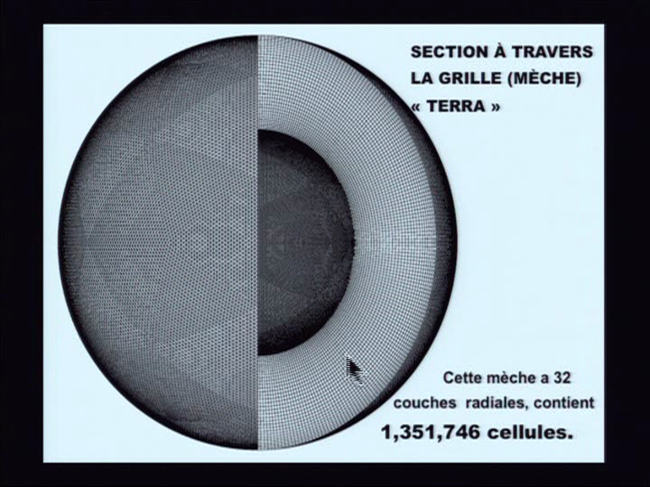 Nampiharina t@ sela ts11 ny antontan-kevitra ananantsika ankehitriny : densité, tsindry, hatevina, hafanàna, hadity (viscosité),... Rehefa vita izay dia nalefany t@ solosaina Cray (supercalculateur) ananki2 mifandray ny prôgrama noforoniny. Nahita izy fa nahatody tendron'ova (maximum) 7 m/s ny hafaingan'ny filentehan'ny takelaka. 20 andro aorian'ny fanombohan'ilay izy dia mahatody ny faran'ny manteau, 2 900 km ambanin'ny velaran'ny tany, ny takelaka.