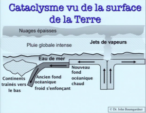 Ho fakafakaintsika kely ity sary ity. Hitantsika eto fa nilentika malaky ny vodin'ny ranomasina, sady voasintona mankany ambany koa ny écorce continentale @'izany. Nosoloin'ny vodin-dranomasina vaovao mafana be (satria magma nivaingana voa haingana ilay izy). Nahatonga ny ranomasina hihamafàna ka hiteraka hetona betsaka be hirohoka @ soson-drivotra izany. Mety izay no "loharano amin’ny lalina lehibe" voalaza @ Baiboly, satria fomba filazàna ny ranomasimbe @ Baiboly ny hoe "lalina lehibe". Farany dia nilatsaka ho oram-be mivatravatra ilay izy.
