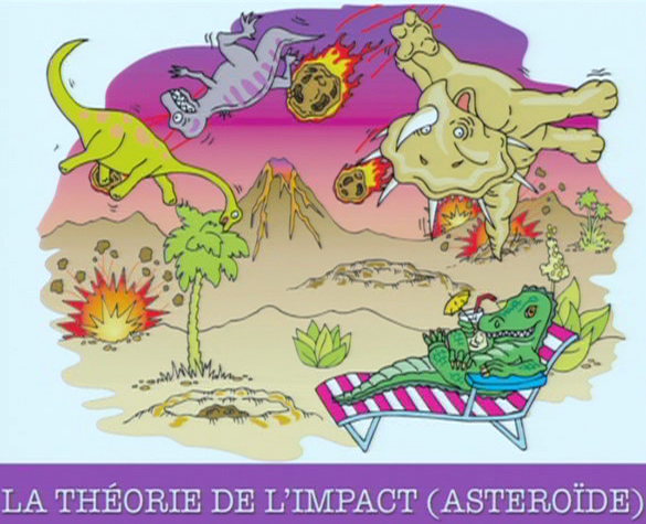 Tena hitan-dry zareo hono ny toerana nilatsahan'ny asterôida : Chicxulub, any @ faritra Yucatan any Mexique. Kanefa izao no zavatra mahagaga : tsy potika mihitsy ny fôsily eo ambanin'ilay toerana lazaina fa nilatsahan'ilay asterôida. Kanefa lazain'izy ireo fa 15 km ny savaivony e. Izany ve dia tsy tokony hamotika ny fôsily efa nisy teo ambaniny ? Torak'izay koa tsy tokony ho potika daholo izay rehetra misy @ 1 000 km manodidina ? Dia gaga ianao :-)