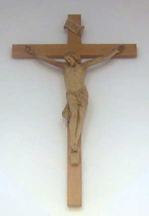 Crucifix est un terme issu du latin ecclésiastique du xiie siècle crucifixus, participe passé du verbe crucifigere, qui signifie « fixer sur une croix ». Un crucifix est donc une croix supportant une statuette de Jésus-Christ dans la posture de la crucifixion.