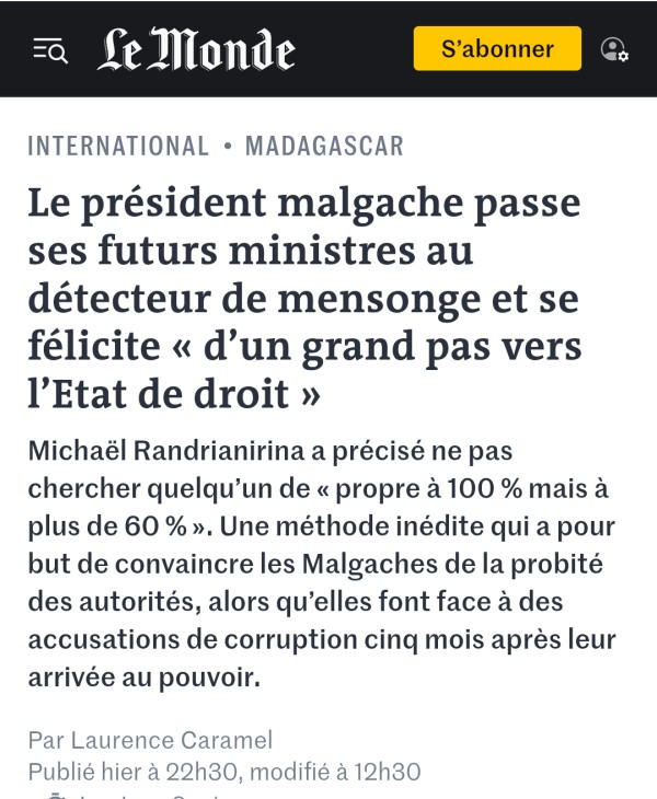 Nanontaniako i ChatGPT fa mbola i Madagasikara ihany aloha no firenena nampiasa fitsapana lainga izany raha ny fahafantarany. Zavatra mbola tsy nisy ???? raha toa ka hanivanana izay hitondra firenena na ho mpikambana ao amin'ny governemanta.